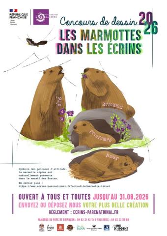 Chaque année, c'est devenu une tradition, le secteur Briançonnais-Vallouise organise son concours de dessin. Vous avez plus de 3 ans, vous êtes un artiste en herbe ou confirmé, et le thème des marmottes dans les Écrins vous inspire ? Imaginez en dessin la vie des marmottes au fil des saisons, leur quête de nourriture, les modes de survie dans leur clan et les milieux naturels. Puis soumettez-nous votre œuvre avant le 31 août 2026.