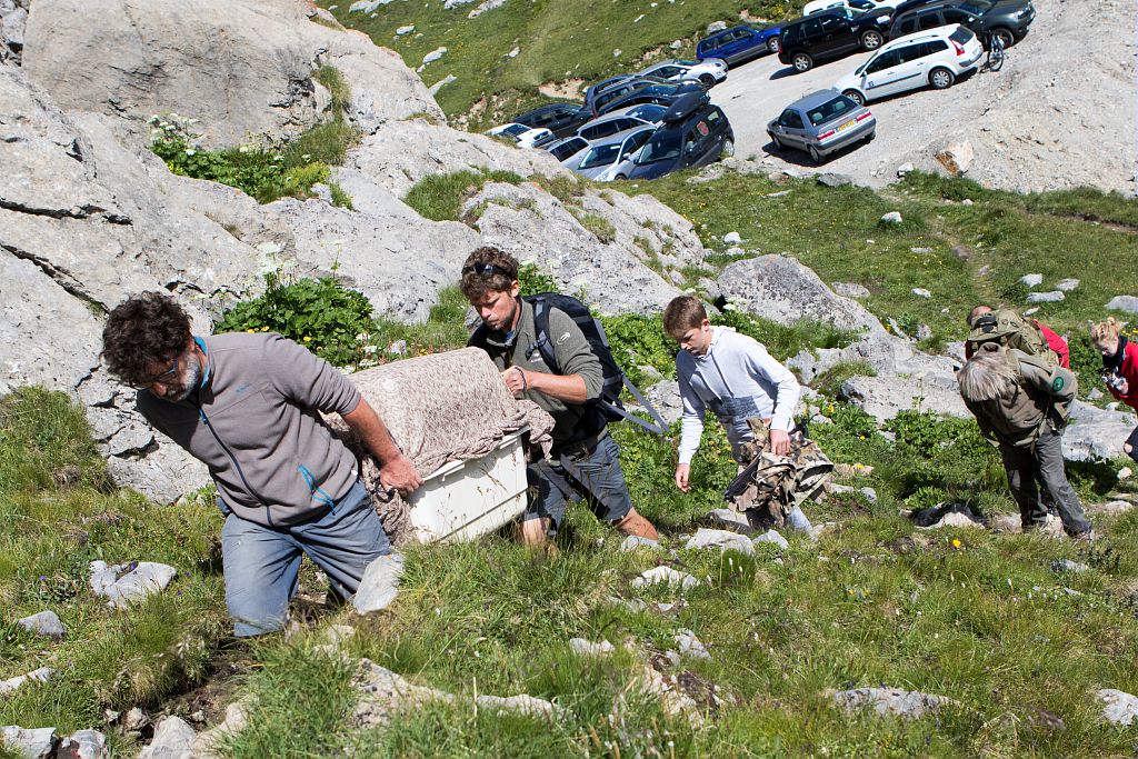 Le rendez-vous a été donné le vendredi 28 juillet, au lieu dit du "Rocher des Curieux", sur la route du col du Galibier (Monêtier-les-Bains). L'oiseau a été amené sur le site dans une caisse de transport.