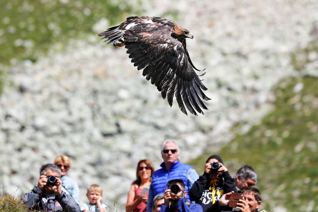 La femelle très puissante, de près de 2 m d'envergure, a été présentée au public puis déposée sur un promontoire rocheux.
