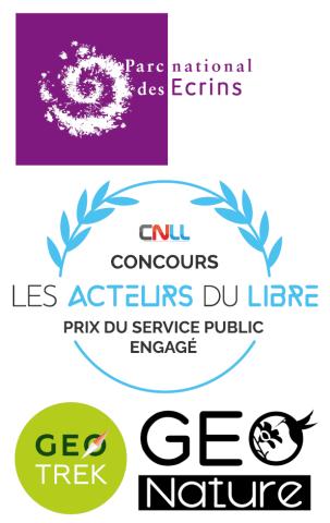 Le Parc national des Écrins remercie les développeurs, la communauté ainsi que les acteurs publics qui lui ont fait confiance et ont soutenu financièrement le projet Geotrek depuis 2013 : le FEDER massif alpin, le programme Interreg Alcotra France - Italie, le commissariat de massif des Alpes à travers le FNADT, et la Région Sud.
