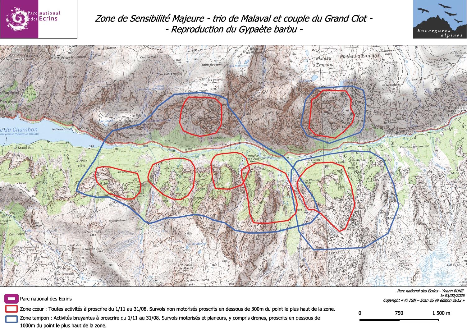Chacune des zones de sensibilité majeure (ZSM) couvre le territoire de nidification des gypaètes, ainsi que les différents nids qu’ils peuvent établir à l’intérieur de ce territoire. En effet, même si leurs aires sont construites en pleine falaise, ils doivent cohabiter avec certaines activités humaines et de potentielles perturbations (cascade de glace, parapente, speed riding…). Le dérangement répété des gypaètes pendant leur reproduction pouvant aboutir à l’abandon du nid, la sensibilisation des pratiquants de ces activités est indispensable. C’est tout l’objet des ZSM.