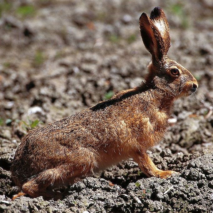 Le lièvre d'Europe (à gauche) est plus gros que le lièvre variable (à droite, un jeune lièvre variable).