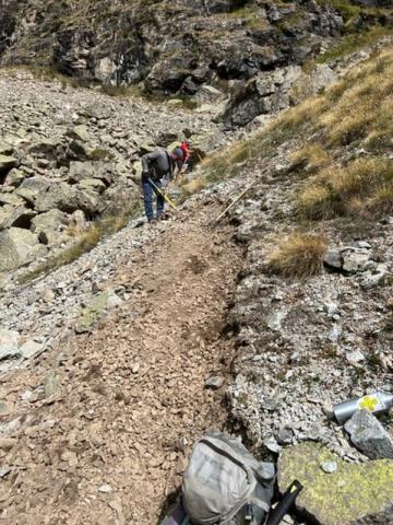 L’assise du sentier a ainsi été reprise sur 3,7 km par l’équipe de FORETSCOP associée à l’ONF. Les travaux, réalisés à la pioche, ont nécessité environ 6 semaines de travail et l’installation d’un camp de bivouac autonome pour les ouvriers. Le coût du chantier s’est élevé à 37 592 € TTC.