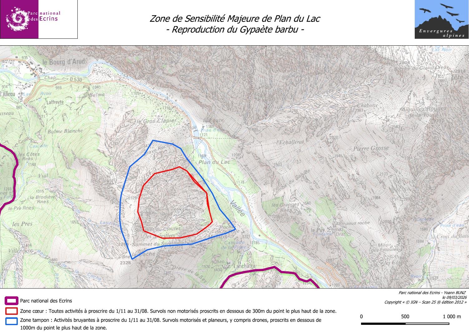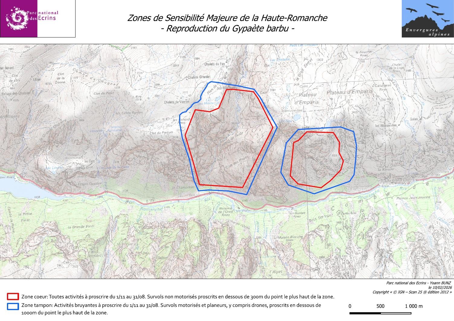 L’élevage des jeunes gypaètes reste une période sensible. Pour leur assurer la plus grande tranquillité, quatre périmètres de protection, les ZSM (zones de sensibilité majeure), sont actifs à ce jour (voir cartes ci-dessous). Les ZSM concernant les aires historiques mais non occupées cette année ont été désactivées au 1er mars dernier.