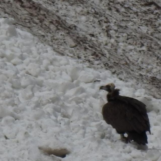 Vautour moine dans le secteur du nid des gypaètes © Nils Paulet - Parc national des Écrins Tout récemment, la présence d'un vautour moine repéré dans le secteur du nid des gypaètes n'a pourtant visiblement occasionné aucune bagare. Le rapace s'est tenu à distance respectable sans doute. Des observateurs de l'association Envergures alpines ont également observé l'oiseau dans ce même quartier.