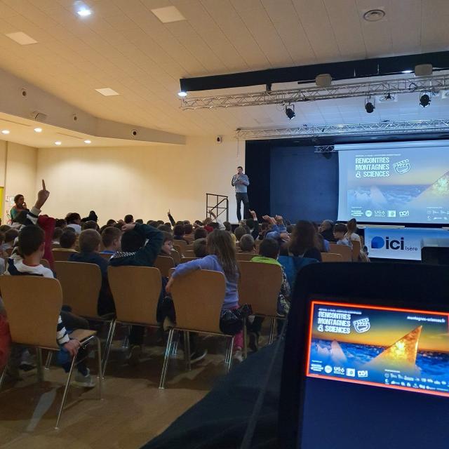 Le 2 décembre, 270 élèves de l'Oisans, de Séchilienne, La Mure et Jarrie, du CE2 à la 3e, ont fait le déplacement. Parmi les quatre films projetés dans l’après-midi, deux ont fait l’objet d’une animation par les agents du Parc : Narcisse Certain, garde-moniteur, a répondu aux (nombreuses !) questions des participants après le visionnage de Tétras-lyre, le dandy des Alpes ; Suzanne Foret, chef du secteur Oisans-Valbonnais, a abordé la question des risques d’éboulements en montagne après la diffusion de Mont Granier, le chant des failles.