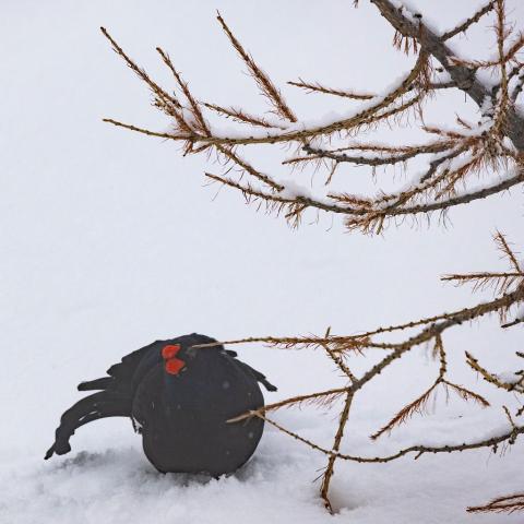 Mais les skieurs ne sont pas les seuls adeptes du site. Les sous-bois clairs orientés au nord sont aussi des sites d’hivernage très appréciés des tétras lyres. Ils y trouvent des conditions favorables pour leur protection et leurs besoins alimentaires. La neige restant poudreuse leur permet de creuser des igloos pour s’enfouir sous la neige, quelques heures voire plusieurs jours. Dans ces abris, ils échappent aux prédateurs et surtout, aux températures extérieurs glaciales, ce qui représente pour eux une économie d’énergie capitale en cette période critique et limitée en ressources alimentaires.