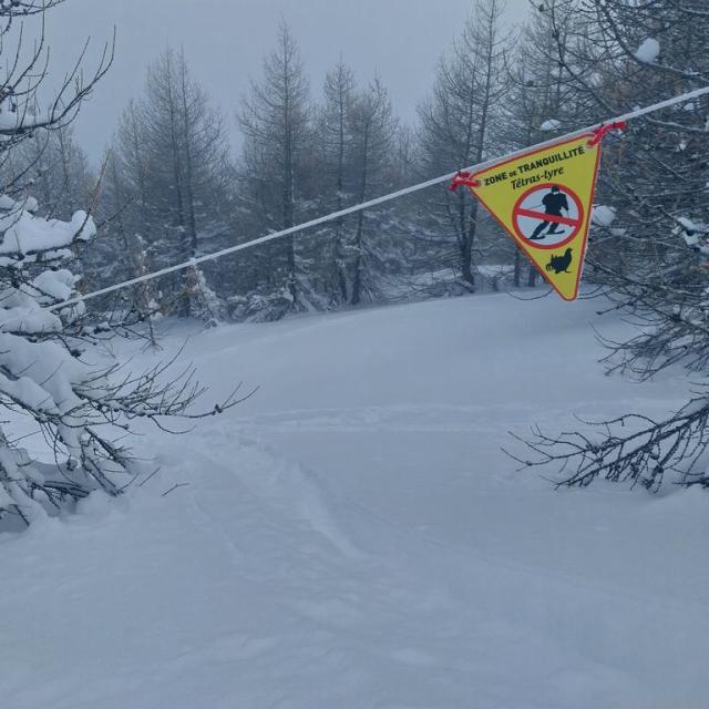 C’est pour garantir aux tétras lyres des espaces de tranquillité que l’OFB (Office Français de la Biodiversité) et le Parc national des Écrins ont créé en 2021 deux zones de quiétude sous la tête de Fouran. S’il est interdit d’y pénétrer sous peine d’amende, les agents de l’Embrunais ont relevé cet hiver quelques passages de skieurs indélicats. Afin de ne pas mettre en péril la survie des tétras lyres, il est demandé à tous les pratiquants de respecter les zones matérialisées. Elles ne représentent que quelques hectares et laissent donc suffisamment de place sur le versant pour tracer de belles courbes !