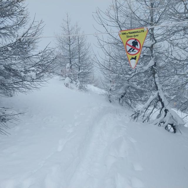 Sur les pentes de la tête de Fouran, au-dessus de Réotier, n’évoluent pas que des skieurs. C’est aussi là que de nombreux tétras lyres passent l’hiver, une saison à haut risque pour eux. Pour leur donner les meilleures chances de survie, il est primordial de respecter les zones de quiétude matérialisées. Au vu de la forte fréquentation du site depuis un mois, les agents du Parc de l’Embrunais sont présents sur place régulièrement pour sensibiliser les skieurs.