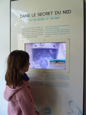 "Dans 12 jours minimum ou 17 jours maximum, selon les conditions climatiques et notamment la température extérieure, on devrait pouvoir observer sept oisillons" explique Maryse, l'hôtesse d'accueil.