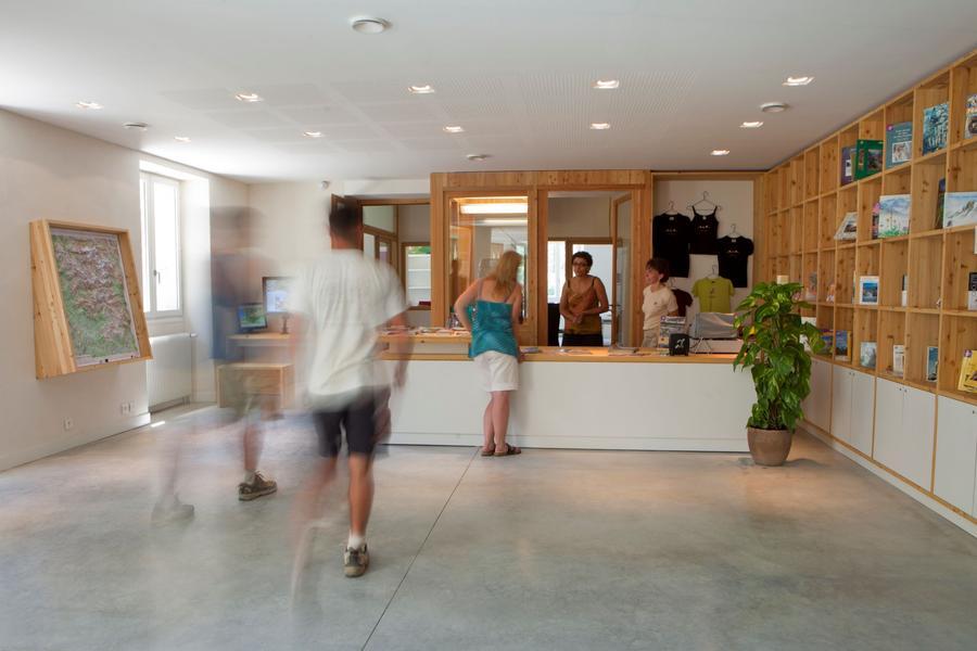 Information, documentation, expositions permanente et temporaire. Vente des produits du Parc. Animations.