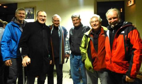 Sur la photo ci-dessus : Luc Moreau, Denis Fabre, Bernard Francou, Louis Reynaud, François Valla, Hervé Cortot : six glaciologues qui se sont penchés sur le glacier du Laurichard, réunis en 2013 par le Parc national des Ecrins lors d'une conférence à Villar d'Arène.