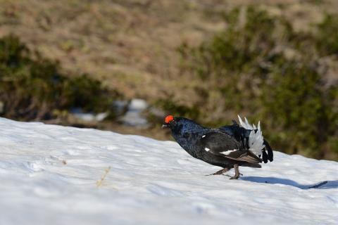 Cette espèce emblématique du Parc national des Écrins est suivi depuis les années 1980 dans les Alpes, dans le cadre de l'OGM (observatoire des galliformes de montagne).Parade de printemps  © R.Chevalier - Parc national des Écrins