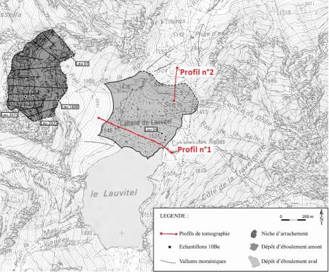 C’est dans ce contexte que Romain Delunel, étudiant à l’Institut de Géographie Alpine de Grenoble, a initié en 2003 une étude géomorphologique du barrage du Lauvitel afin de comprendre de quelle façon et à quelle époque il s’est formé.