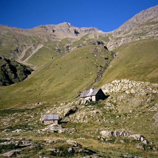 Protégée des avalanches par un gros rocher, cette cabane abrite le berger de juin à fin juillet. Afin d'exploiter la ressource en herbe au fil de la pousse, une autre cabane située au-dessus de la barre qui ferme le vallon complète l'équipement de l’alpage. Pour la tranquillité du berger, il est préférable d'observer la cabane à distance.