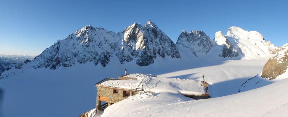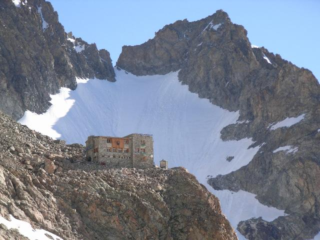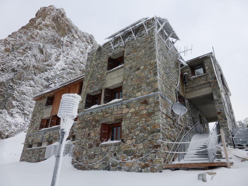 Le refuge actuel, construit dans les années 60 est une bâtisse rustique en pierres de taille… Le confort y est sommaire. Par mauvais temps, la température intérieure chute vite, le poêle à bois de la salle à manger fonctionne au printemps et aussi les jours de mauvais temps. Au mois d’avril et au mois de mai (voire juin), nous faisons fondre la neige sur les poêles et sur le toit du refuge, cette précieuse eau nous permet de cuisiner et d’entretenir le refuge. Aux environs du quinze juin, il est possible de récupérer de l’eau de fonte depuis un captage situé en amont du refuge, l’eau circule dans un tuyau accroché à la falaise, de ce fait la ressource en eau est étroitement dépendante du thermomètre et des conditions climatiques du moment. Le refuge dispose de quatre WC et deux coins lavabo qui sont desservis en eau froide… donc fermés quand il gèle. Pour la consommation en eau potable, nous vous proposons des bouteilles d’un litre et demi. L’alimentation électrique du refuge provient exclusivement des panneaux solaires. Ceux-ci, par le biais des batteries, permettent d'assurer le minimum nécessaire au fonctionnement du refuge (bureautique, éclairage, frigidaire, congélateurs et ustensiles de cuisine). L’irrégularité de l’ensoleillement ne nous permet donc pas de recharger vos appareils photo et téléphones... Pour le couchage, le refuge est composé de 5 dortoirs. Les couchages sont organisés sur deux niveaux (bat-flancs). Ces dortoirs sont équipés en draps housses, oreillers et couvertures. Vous devez prendre avec vous un " sac à viande". En hiver, quand le refuge est non gardé, une partie reste à votre disposition avec 40 places. Nous laissons quelques couvertures, mais nous vous conseillons de prendre un très bon duvet car il n y a pas de chauffage. Il n'y a pas de gaz et peu d’ustensiles de cuisine. Une contribution fixée par la FFCAM vous sera demandée pour utiliser le refuge à cette période. Vous trouverez une urne dans le premier sas en rentrant pour y déposer votre argent. Les déchets : Comme toujours en montagne, vos déchets doivent être redescendus par vous-mêmes. Les déchets produits par le refuge sont triés et redescendus dans la vallée par hélicoptère. La gestion du refuge est pensée pour limiter le nombre de rotations d'hélicoptère… Nous remercions donc nos montagnards de redescendre leurs propres déchets.