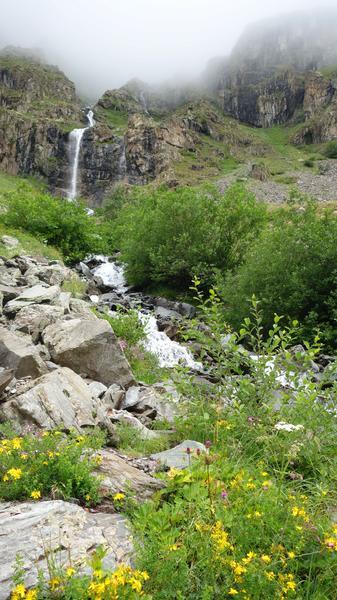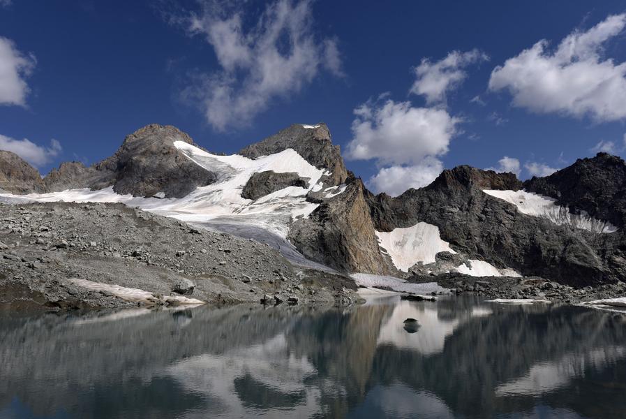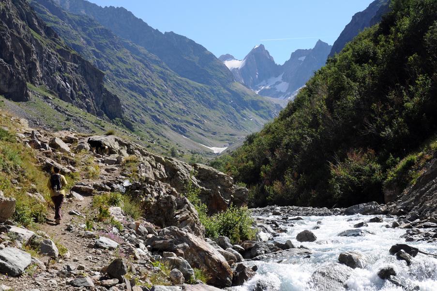3h30 de marche depuis le hameau des Prés au-dessus de Saint Christophe en Oisans. Face au Glacier de la Selle et au pied du Râteau. Passage dans le Parc national des Ecrins. Chiens interdits même tenus en laisse.