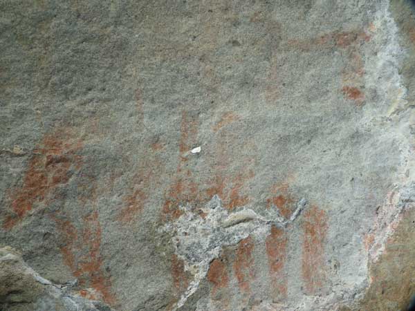 Seul l'œil averti d'un archéologue pouvait repérer l'histoire potentielle de ces pâles traces dans le rocher.