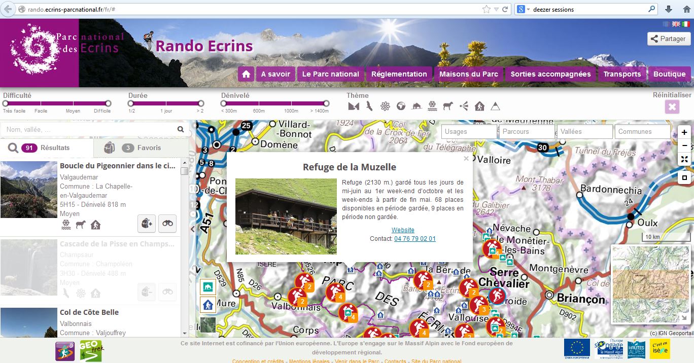 Les refuges sont aussi valorisés dans les itinéraires proposés sur le portail « Rando Ecrins » qui présente une offre de randonnée et de découverte des patrimoines dans le parc national.