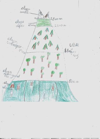 Ainsi, nous avons bien compris qu’à l’étage collinéen, nous trouvons un paysage fait de villages, habitations et cultures. À l’étage montagnard, on observe des forêts de feuillus tandis qu’à l’étage subalpin correspondent des forêts de résineux. A l’étage alpin, il n’y plus d’arbre, seulement de l’herbe, car il y fait trop froid pour que les arbres puissent se développer et enfin l’étage nival correspond aux sommets sur lesquels on peut voir des glaciers et il n’y a donc pas de végétation.