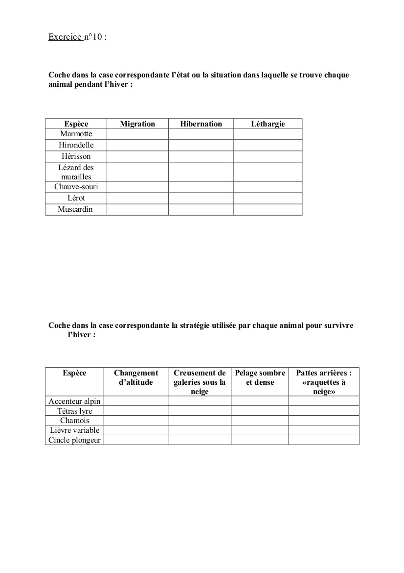 Deux séances supplémentaires ont permis de travailler sur la survie des animaux en hiver.