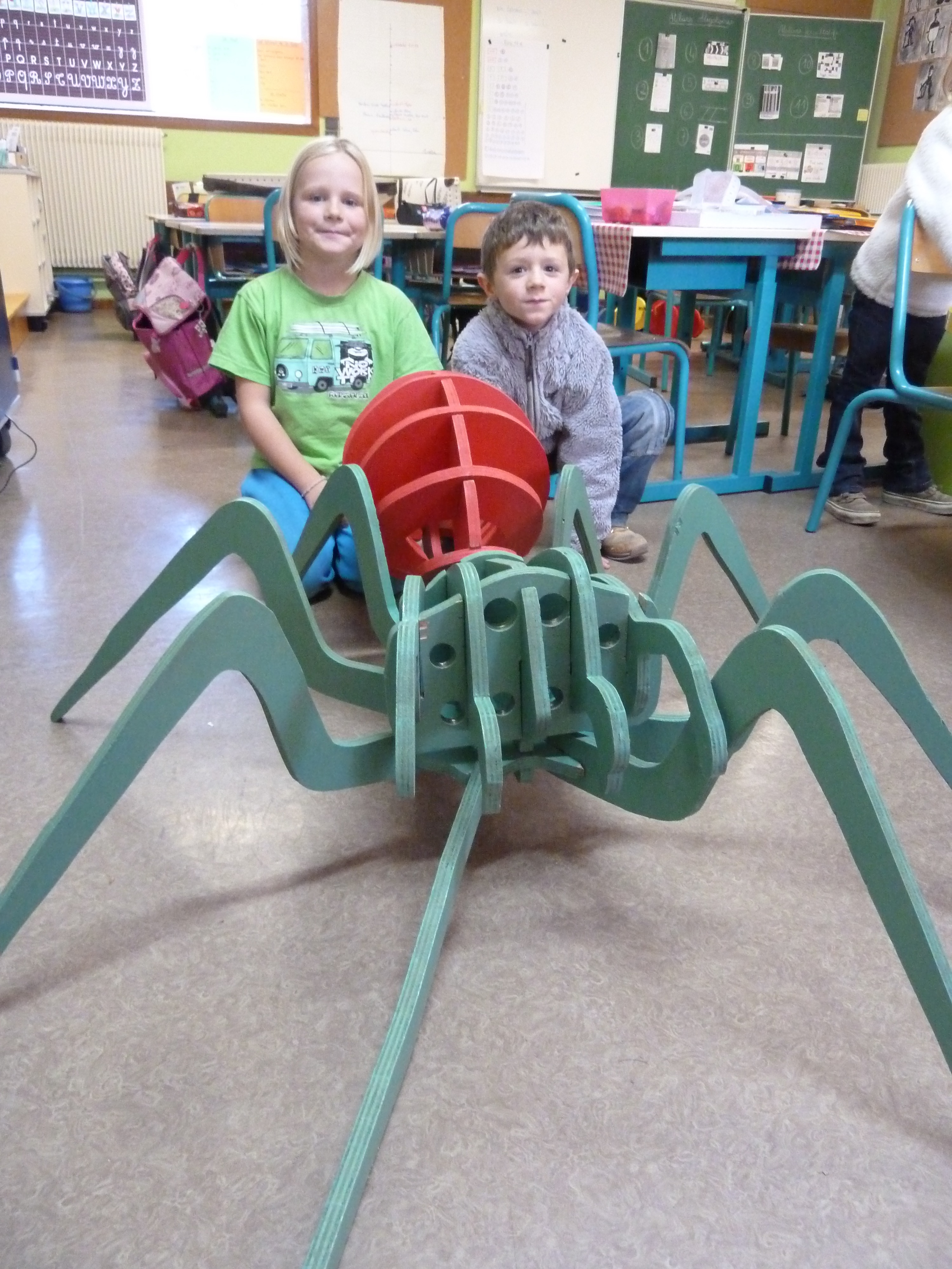 Blandine a apporté dans notre classe des maquettes géantes : 3 insectes et une araignée. A nous de reconstituer le corps de ces bêtes énormes !