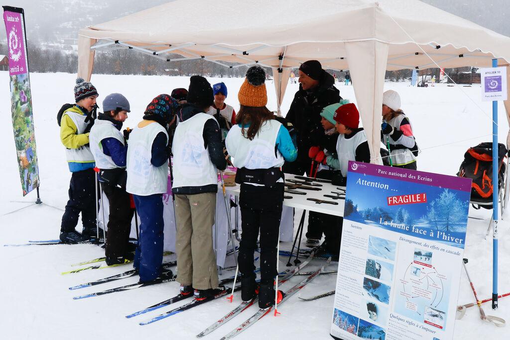 170 élèves de la maternelle au cours moyen étaient présents pour découvrir ou redécouvrir les sports de neige nordiques. Olivier et Xavier, deux gardes-moniteurs de la Vallouise, ont tenu un stand toute la journée sur le domaine pour sensibiliser les enfants à la faune sauvage.